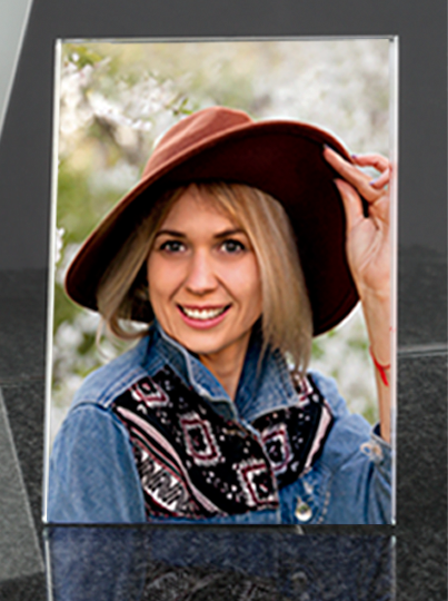 Dzięki połączeniu różnych technologii jesteśmy wstanie uzyskać praktycznie każdą barwę, a kolory zdjęcia nagrobkowego na szkle są naturalne. Głębia obrazu oraz nasycenie kolorystyczne gwarantuje cyfrowe odwzorowanie. Jesteśmy również otwarci na pomysły naszych klientów. Przy opracowywaniu kryształowych zdjęć na pomnik stawiamy na indywidualne projekty i rozwiązania.