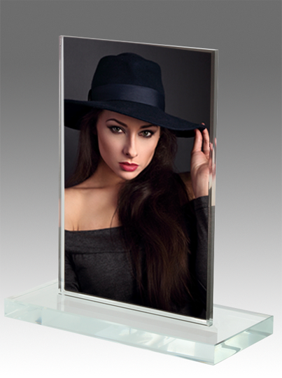 Kryształ zdjęcia w szkle na pomnik umieszczony jest na szklanej podstawce (fazowanej lub niefazowanej) pod kątem 90°. Do pomnika montuje się podstawkę, za pomocą bezbarwnego kleju/silikonu nanoszonego punktowo.